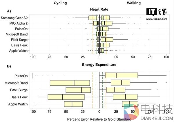 总的来说,研究人员发现,大多数测试的健身追踪器都能够在实验室环境中得到误差范围内可接受的心率数据,但是卡路里的测量在很大程度上是不准确的。