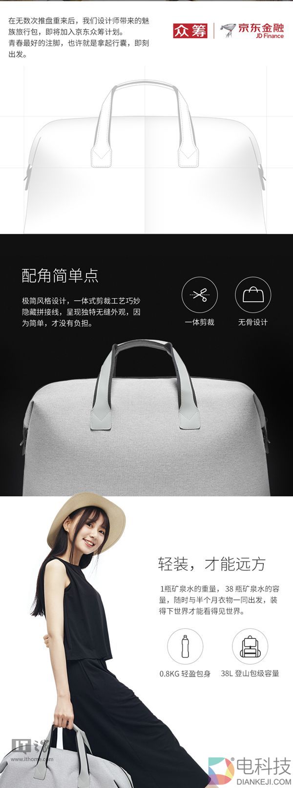 IT之家5月17日消息 今天上午,魅族官方以众筹的形式发布了一款魅族旅行包,与之前发布的双肩包相比有